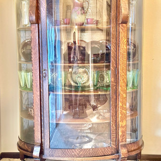 Antique Tiger Oak Wood Bow Front Curio Cabinet with Key ($1500.00)